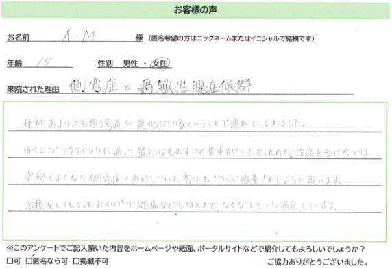 「母があまりにも側湾症が悪化しているということで連れてこられました。