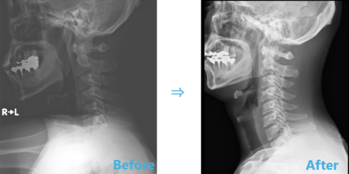 当初の画像と比べると(写真左)、ストレートネックが随分改善されていました(写真右)。