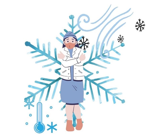 筋肉と関節のこわばり: 寒さで血管が収縮し、血流が悪くなることで筋肉は柔軟性を失い、ゴムのように硬くなります。